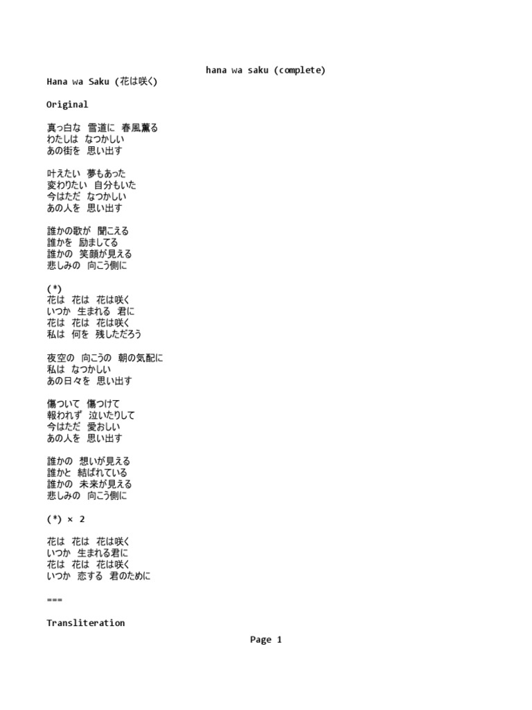 Home ⇨ Hana wa saku lyrics